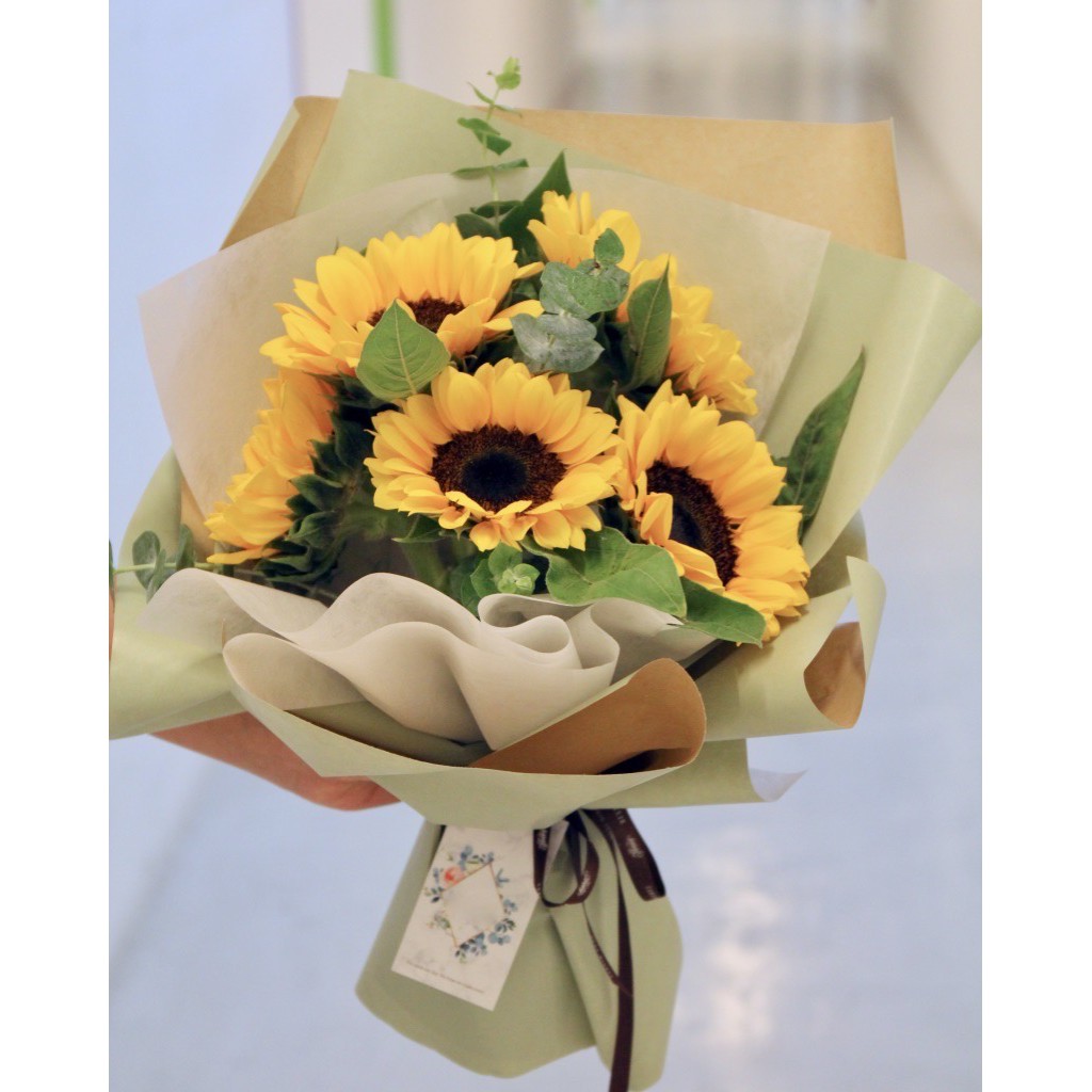 Sg Seller Free Delivery Fresh Flower Bouquet 5 Stem Sunflower Bouquet Shopee Singapore